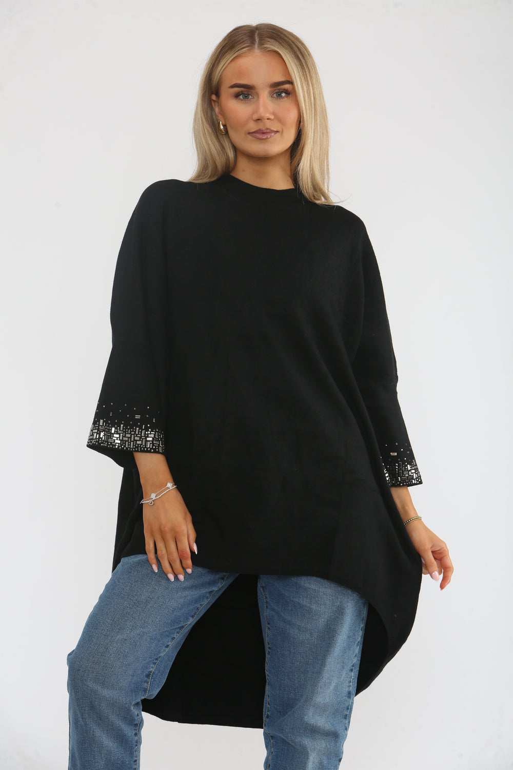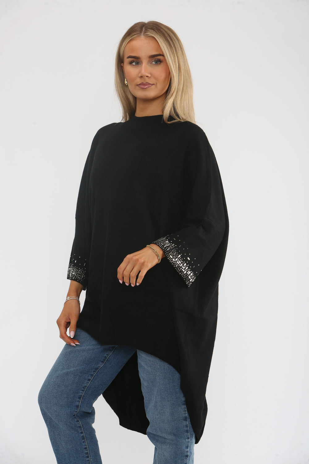 EMBELLISHED SLEEVE OVERSIZED JUMPER